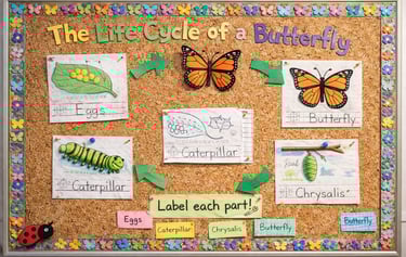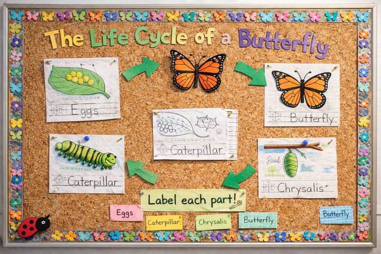 Finally, consider creating a bulletin board focusing on the life cycle of a butterfly. This interactive board can be a fantastic visual aid to teach students about metamorphosis. Kids can make sections that show each stage—from egg to caterpillar to chrysalis and finally, a beautiful butterfly. You could even incorporate a small activity where students can trace and label each phase. This not only reinforces science concepts but also gives them an opportunity to collaborate on a meaningful project.